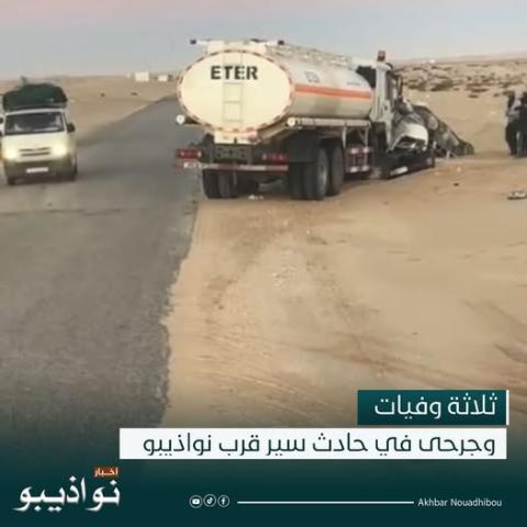 .وقع، فجر اليوم، حادث سير وُصف بالخطير على الطريق الرابط بين نواكشوط ونواذيبو، قرب الكيلومتر 50 من مدينة نواذيبو، إثر اصطدام قوي بين صهريج تابع لشركة ETER وحافلة نقل عمومي.