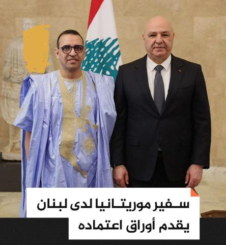 .قدّم سعادة السفير المختار الشيخ محمد المجتبى، اليوم، أوراق اعتماده رئيس الجمهورية اللبنانية العماد جوزيف عون، بصفته سفيرًا فوق العادة وكامل السلطة للجمهورية الإسلامية الموريتانية لدى الجمهورية اللبنانية، ومقيمًا بدمشق.