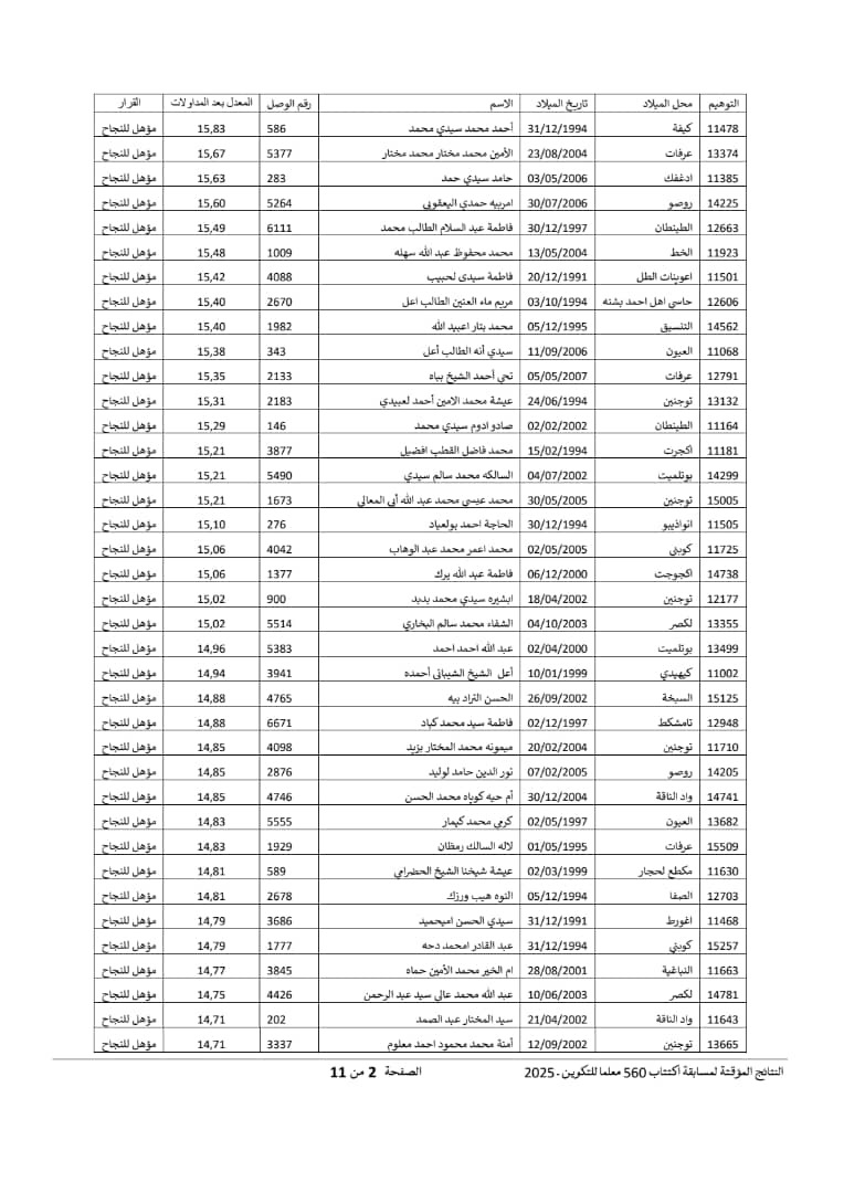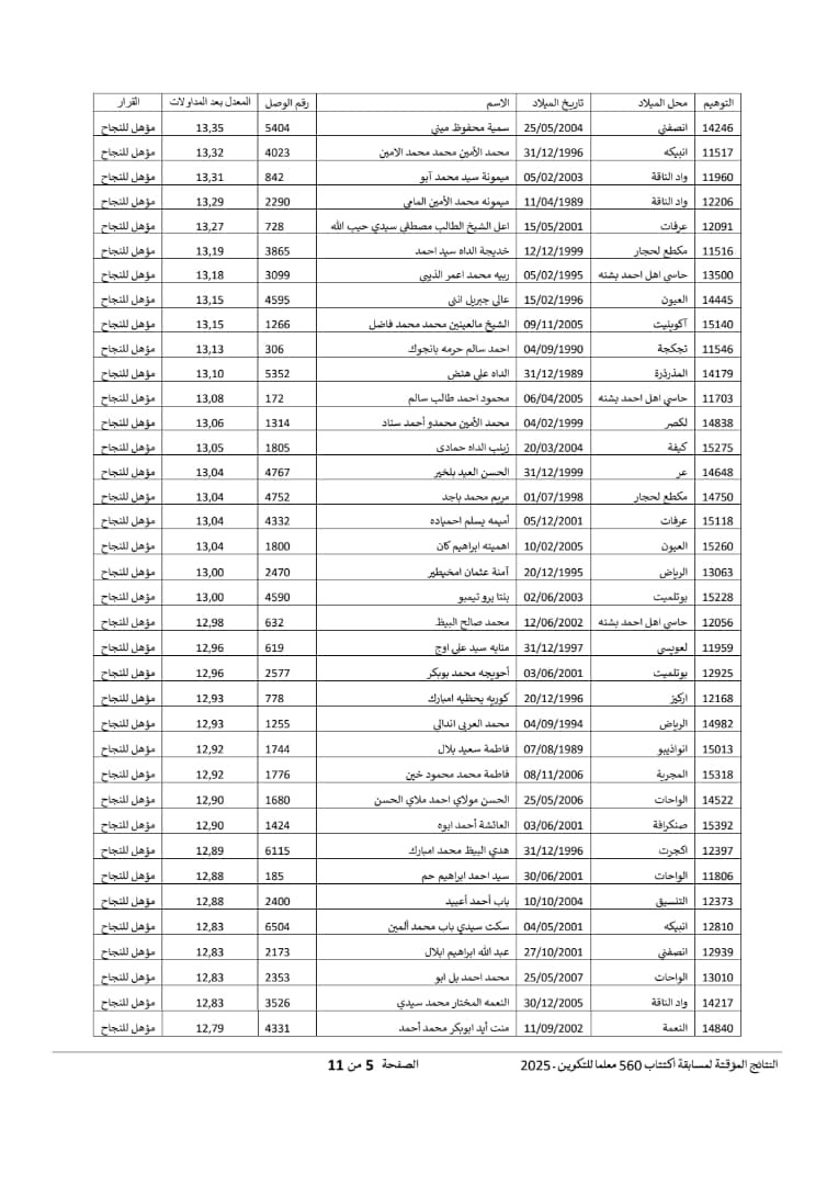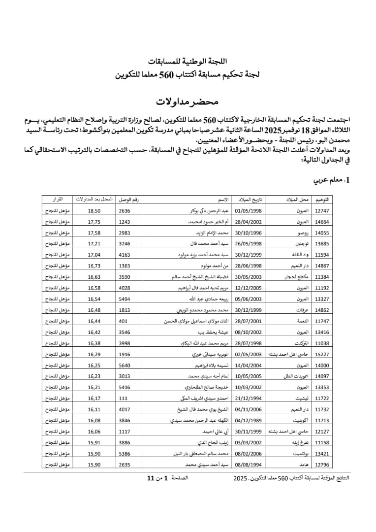ومن بين الناجحين معلمو اللغة العربية، ومعلمو اللغة الفرنسية، والمعلمون المزدوجون، وفق اللائحة المؤقتة للمؤهلين للنجاح حسب الاستحقاق.