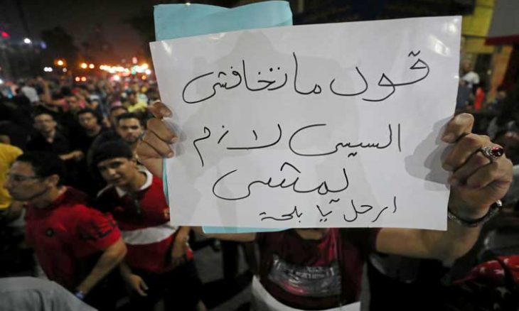 وقادت مزاعم الفساد التي ينفي عبد الفتاح السيسي أي علاقة بها أدت إلى احتجاجات صغيرة في يوم الجمعة ولكنها نادرة، وعمت التظاهرات القاهرة ومدنا مصرية أخرى واستمرت حتى الساعات الأولى من صباح السبت. واستخدمت الشرطة القنابل المسيلة للدموع وتم اعتقال 166 شخصا على الأقل. وهتف المتظاهرون بشعارات تطالب برحيل السيسي.