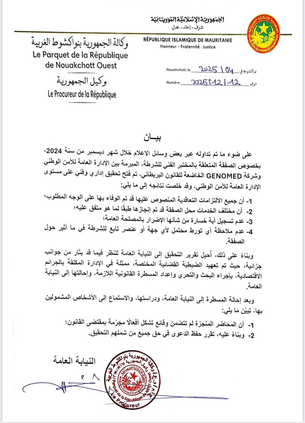 في اجراء لم يكن متوقع أعلنت النيابة العامة قرارها بحفظ الدعوى في ملف الصفقة المتعلقة بالمختبر الفني للشرطة، المبرمة بين الإدارة العامة للأمن الوطني وشركة GENOMED الخاضعة للقانون البريطاني، وذلك بعد استكمال المسطرة القانونية ودراسة نتائج التحقيقات الإدارية والفنية والقضائية. حسب في بيان لها حصلت تقدمي على نسخة منه.